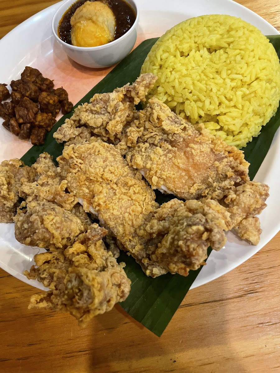 The turmeric rice is fragrant and flavorful, with a subtle spice and aroma that pairs perfectly with the crispy fried chicken. The rice is well-cooked, not too oily, and has a comforting golden color that makes the dish inviting. The fried chicken is crispy on the outside and juicy on the inside, with just the right amount of seasoning. Together with the turmeric rice, it creates a hearty and satisfying combination — light spice from the rice balanced with the savory crunch of the chicken.